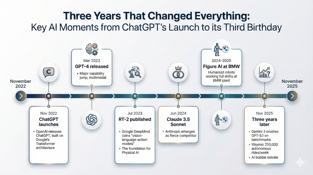 Today, three years later, markets are up 16% year-to-date. There is a sense of exuberance. We’re debating whether we’re in an AI bubble. That optimism traces back to a single moment, precisely three years ago, which is why marking ChatGPT’s third birthday feels significant.